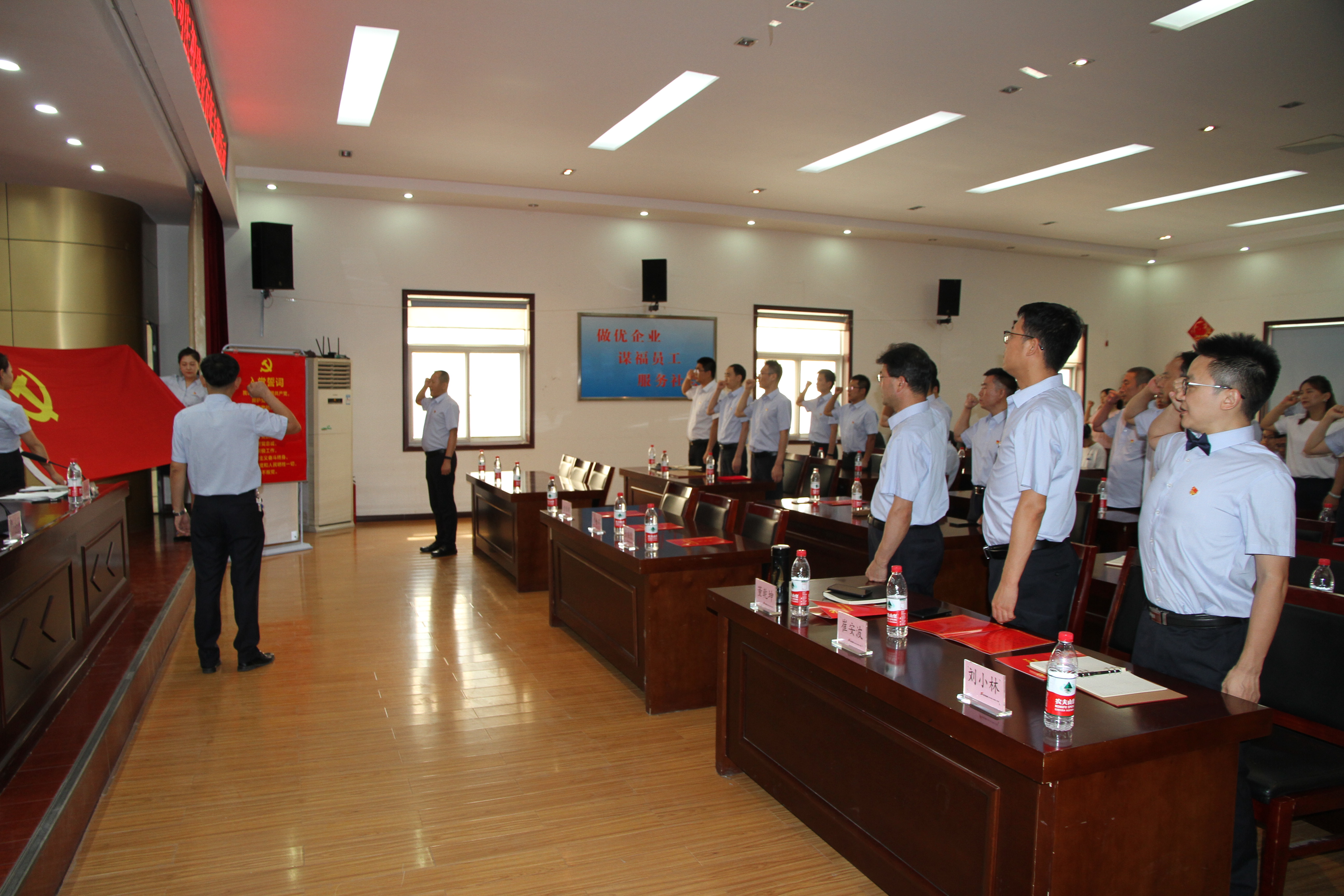 隨后,馮永強帶領全體黨員干部重溫入黨誓詞,“我志愿加入中國共產黨......”一句句誓詞鏗鏘有力,回蕩在大廳上空。
