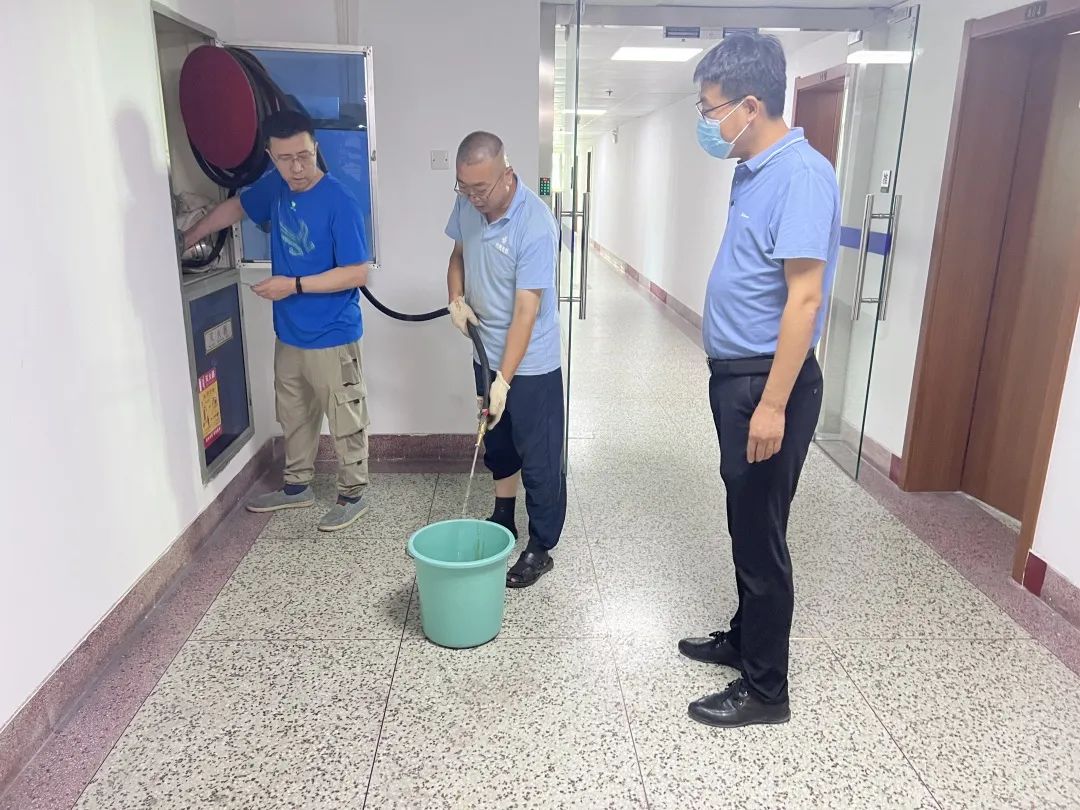 此前經(jīng)安全生產(chǎn)大檢查發(fā)現(xiàn),公司辦公樓一樓東側(cè)安全疏散口不通,并且消防栓存在多年無水問題,有嚴(yán)重消防安全隱患。按照公司立查立改要求,安環(huán)部主任立即制定解決方案,頂著著烈日酷暑,組織人員克服重重困難,對樓頂樓底水箱漏水點等多處問題進(jìn)行整改維修,最終解決了隱患。