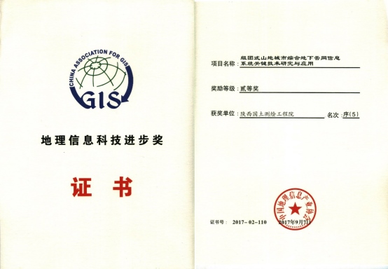地理信息科技進(jìn)步獎(jiǎng)二等獎(jiǎng)證書