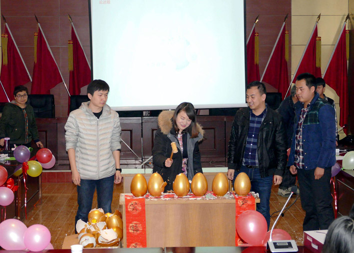 23日上午,五彩繽紛的院三樓會(huì)議室,座滿了院內(nèi)外業(yè)的生產(chǎn)員工,這里正在進(jìn)行著迎新年聯(lián)歡會(huì)。院長(zhǎng)黨委書記張福良、黨委副書記、紀(jì)委書記、工會(huì)主席李世平、副院長(zhǎng)董乾坤、副院長(zhǎng)童雅妮、副院長(zhǎng)總工程師王小龍參加聯(lián)歡會(huì)。聯(lián)歡會(huì)的主題是知識(shí)競(jìng)賽。競(jìng)賽活動(dòng)以從金蛋里抽出張福良書寫的“雞聲窗前月,人笑福里春”春聯(lián)的歡樂氣氛中拉開帷幕。緊接著會(huì)場(chǎng)兩旁來自生產(chǎn)崗位的16支代表隊(duì)和周邊觀眾靜靜的盯著投影幕布。在王小龍的主持下,一道道知識(shí)競(jìng)賽問答題飛入幕布,各代表隊(duì)爭(zhēng)先搶答。每答對(duì)一道題,就會(huì)現(xiàn)場(chǎng)獲得一份精美的獎(jiǎng)品。答題內(nèi)容涉及天文地理、時(shí)事政治、民風(fēng)民俗、測(cè)繪知識(shí)等儲(chǔ)多領(lǐng)域。答題形式采取槍答、點(diǎn)答、擊鼓傳花等多種形式,副院長(zhǎng)童雅妮和主任工程師羅顯元專司點(diǎn)評(píng),現(xiàn)場(chǎng)氣氛緊張、熱烈,現(xiàn)場(chǎng)觀眾參與感強(qiáng)。選手們的精準(zhǔn)答題不斷贏得觀眾陣陣掌聲。